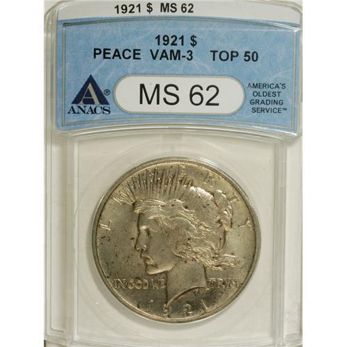 1921 $1 MS62 ANACS. Vam-3 Top 50. NGC Census: (1098/57