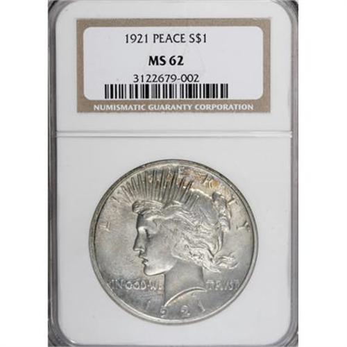 <B>1921 $1 MS62 NGC.</B></I> NGC Census: (1190/6091). PCGS Population (1493/7160). Mintage: 1,006,473. Numismedia Wsl. Price for NGC/PCGS coin in MS62: $250. (#7356)<BR><BR><B>Coin Engraver:</B> Anthony de Francisci<BR><BR><b>Shipping:</b> Coins & Currency (<a target="_blank" href="http://www.heritageauctions.com/common/shipping.php">view shipping information</a>)