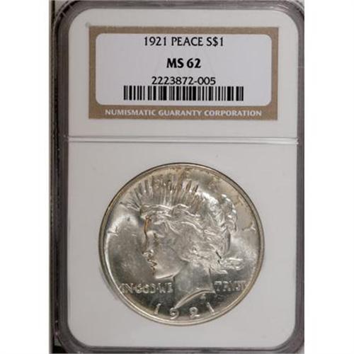 <B>1921 $1 MS62 NGC.</B></I> NGC Census: (1195/6090). PCGS Population (1499/7207). Mintage: 1,006,473. Numismedia Wsl. Price for NGC/PCGS coin in MS62: $265. (#7356)<BR><BR><B>Coin Engraver:</B> Anthony de Francisci<BR><BR><b>Shipping:</b> Coins & Currency (<a target="_blank" href="http://www.heritageauctions.com/common/shipping.php">view shipping information</a>)
