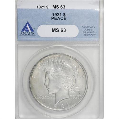 <B>1921 $1 MS63 ANACS.</B></I> . NGC Census: (2145/3946). PCGS Population (2844/4316). Mintage: 1,006,473. Numismedia Wsl. Price for NGC/PCGS coin in MS63: $430. (#7356)<BR><BR><B>Coin Engraver:</B> Anthony de Francisci<BR><BR><b>Shipping:</b> Coins & Currency (<a target="_blank" href="http://www.heritageauctions.com/common/shipping.php">view shipping information</a>)