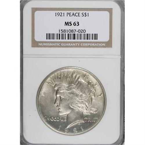 <B>1921 $1 MS63 NGC.</B></I> NGC Census: (2082/3877). PCGS Population (2807/4127). Mintage: 1,006,473. Numismedia Wsl. Price for NGC/PCGS coin in MS63: $420. (#7356)<BR><BR><B>Coin Engraver:</B> Anthony de Francisci<BR><BR><b>Shipping:</b> Coins & Currency (<a target="_blank" href="http://www.heritageauctions.com/common/shipping.php">view shipping information</a>)