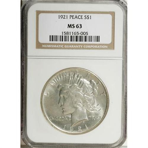 <B>1921 $1 MS63 NGC.</B></I> NGC Census: (2082/3877). PCGS Population (2815/4205). Mintage: 1,006,473. Numismedia Wsl. Price for NGC/PCGS coin in MS63: $420. (#7356)<BR><BR><B>Coin Engraver:</B> Anthony de Francisci<BR><BR><b>Shipping:</b> Coins & Currency (<a target="_blank" href="http://www.heritageauctions.com/common/shipping.php">view shipping information</a>)