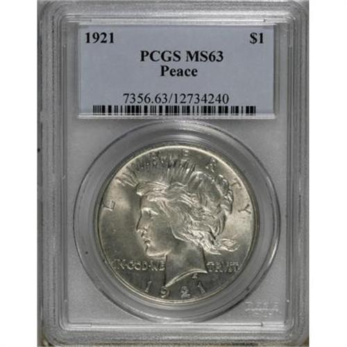 <B>1921 $1 MS63 PCGS.</B></I> PCGS Population (2862/4352). NGC Census: (2145/3936). Mintage: 1,006,473. Numismedia Wsl. Price for NGC/PCGS coin in MS63: $430. (#7356)<BR><BR><B>Coin Engraver:</B> Anthony de Francisci<BR><BR><b>Shipping:</b> Coins & Currency (<a target="_blank" href="http://www.heritageauctions.com/common/shipping.php">view shipping information</a>)