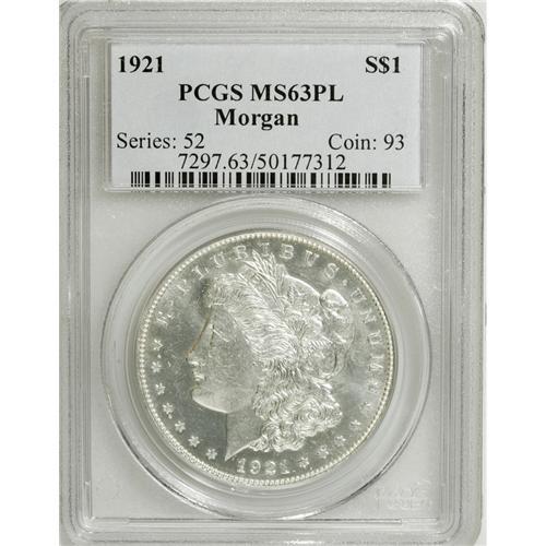 1921 $1 MS63 Prooflike PCGS. PCGS Population (105/