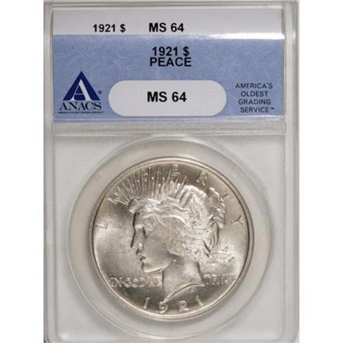 <B>1921 $1 MS64 ANACS.</B></I> Though the centers show typical softness, this near-Gem is attractive otherwise. Both sides offer powerful luster that shines through faint gold-inflected patina. Only a few wispy marks on the portrait preclude a finer designation.<BR><BR><B>Coin Engraver:</B> Anthony de Francisci<BR><BR><b>Shipping:</b> Coins & Currency (<a target="_blank" href="http://www.heritageauctions.com/common/shipping.php">view shipping information</a>)