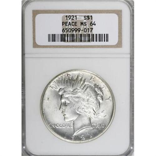 <B>1921 $1 MS64 NGC.</B></I> NGC Census: (2911/1018). PCGS Population (3084/1181). Mintage: 1,006,473. Numismedia Wsl. Price for NGC/PCGS coin in MS64: $690. (#7356)<BR><BR><B>Coin Engraver:</B> Anthony de Francisci<BR><BR><b>Shipping:</b> Coins & Currency (<a target="_blank" href="http://www.heritageauctions.com/common/shipping.php">view shipping information</a>)