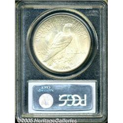<B>1921<img border='0' src='http://www.heritagecoins.com/images/star.gif' width=10 height=10>$1 MS64 PCGS.</B></I> Uncommonly well struck for the date, this beautiful cream-gray example has pleasing luster and is high end for the grade. A couple of faint marks on the portrait are all that prevent classification as a full Gem.