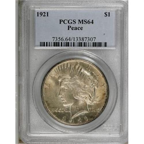<B>1921 $1 MS64 PCGS.</B></I> PCGS Population (3077/1181). NGC Census: (2909/1014). Mintage: 1,006,473. Numismedia Wsl. Price for NGC/PCGS coin in MS64: $690. (#7356)<BR><BR><B>Coin Engraver:</B> Anthony de Francisci<BR><BR><b>Shipping:</b> Coins & Currency (<a target="_blank" href="http://www.heritageauctions.com/common/shipping.php">view shipping information</a>)