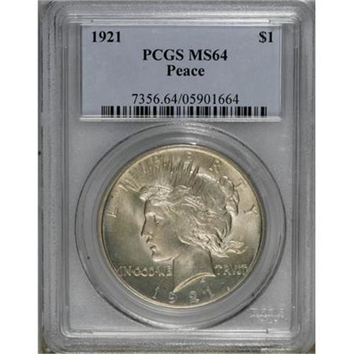 <B>1921 $1 MS64 PCGS.</B></I> Light to medium caramel-gold toning adorns this lustrous and minimally abraded near-Gem. The strike is good for the issue, with only moderate blending of design detail at the centers.<BR><BR><B>Coin Engraver:</B> Anthony de Francisci<BR><BR><b>Shipping:</b> Coins & Currency (<a target="_blank" href="http://www.heritageauctions.com/common/shipping.php">view shipping information</a>)