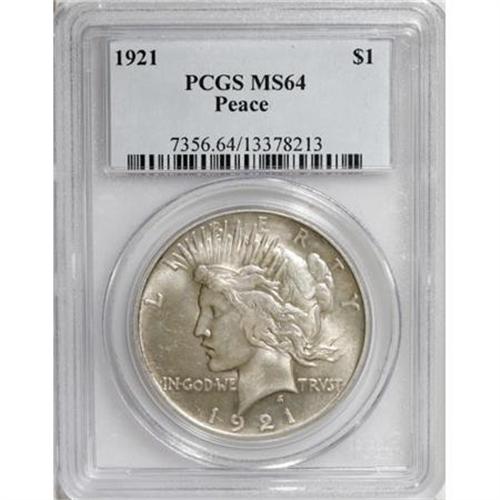 <B>1921 $1 MS64 PCGS.</B></I> This key-date 1921 Peace dollar is consistently toned a lovely copper-gold, and radiant luster emanates from underneath the light coloration. Fairly well struck and thoroughly delightful.<BR><BR><B>Coin Engraver:</B> Anthony de Francisci<BR><BR><b>Shipping:</b> Coins & Currency (<a target="_blank" href="http://www.heritageauctions.com/common/shipping.php">view shipping information</a>)
