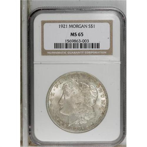 <B>1921 $1 MS65 NGC.</B></I> NGC Census: (7244/641). PCGS Population (4355/456). Mintage: 44,690,000. Numismedia Wsl. Price for NGC/PCGS coin in MS65: $128. (#7296)<BR><BR><b>Shipping:</b> Coins & Currency (<a target="_blank" href="http://www.heritageauctions.com/common/shipping.php">view shipping information</a>)
