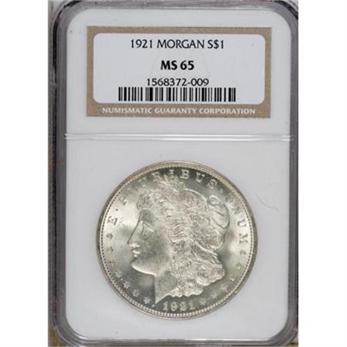 <B>1921 $1 MS65 NGC.</B></I> NGC Census: (7268/643). PCGS Population (4355/456). Mintage: 44,690,000. Numismedia Wsl. Price for NGC/PCGS coin in MS65: $128. (#7296)<BR><BR><b>Shipping:</b> Coins & Currency (<a target="_blank" href="http://www.heritageauctions.com/common/shipping.php">view shipping information</a>)