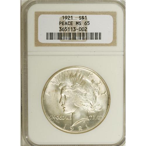 <B>1921 $1 MS65 NGC.</B></I> NGC Census: (879/90). PCGS Population (960/144). Mintage: 1,006,473. Numismedia Wsl. Price for NGC/PCGS coin in MS65: $1,900. (#7356)<BR><BR><b>Shipping:</b> Coins & Currency (<a target="_blank" href="http://www.heritageauctions.com/common/shipping.php">view shipping information</a>)