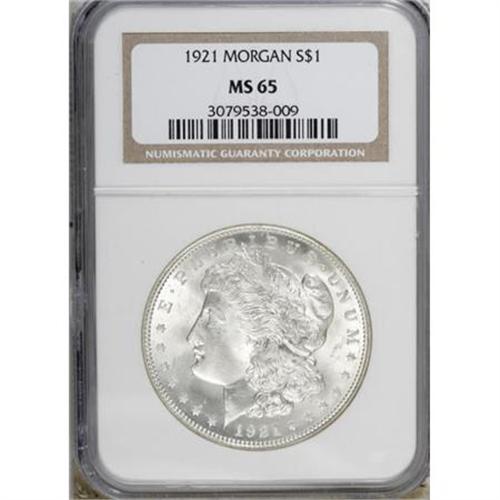 <B>1921 $1 MS65 NGC.</B></I> . NGC Census: (7541/655). PCGS Population (4529/463). Mintage: 44,690,000. Numismedia Wsl. Price for NGC/PCGS coin in MS65: $125. (#7296)<BR><BR><b>Shipping:</b> Coins & Currency (<a target="_blank" href="http://www.heritageauctions.com/common/shipping.php">view shipping information</a>)
