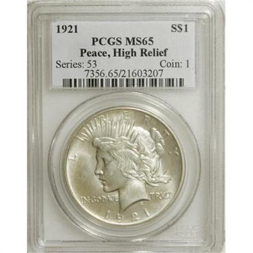 <B>1921 $1 MS65 PCGS.</B></I> Light apricot toning graces this lustrous and undisturbed Gem. While the majority of examples have little to no detail at the center of the obverse, this shining piece has above-average definition on the strands of hair found there.<BR><BR><B>Coin Engraver:</B> Anthony de Francisci<BR><BR><b>Shipping:</b> Coins & Currency (<a target="_blank" href="http://www.heritageauctions.com/common/shipping.php">view shipping information</a>\)