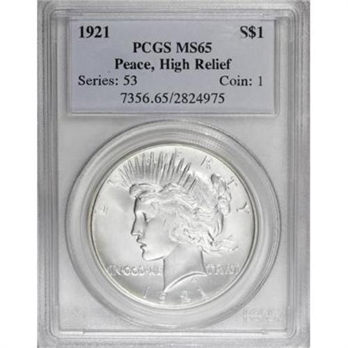 <B>1921 $1 MS65 PCGS.</B></I> This nearly untoned and thoroughly lustrous Gem has excellent eye appeal, since the cheek and fields are beautifully smooth. The centers are incompletely brought up, as always except on the very rare proofs.<BR><BR><B>Coin Engraver:</B> Anthony de Francisci<BR><BR><b>Shipping:</b> Coins & Currency (<a target="_blank" href="http://www.heritageauctions.com/common/shipping.php">view shipping information</a>)