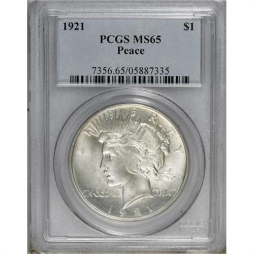 <B>1921 $1 MS65 PCGS.</B></I> This original Gem has scintillating luster and delicate caramel-gold toning. Minor grazes on each side are of little import. The centers exhibit bluntness characteristic of the issue.<BR><BR><B>Coin Engraver:</B> Anthony de Francisci<BR><BR><b>Shipping:</b> Coins & Currency (<a target="_blank" href="http://www.heritageauctions.com/common/shipping.php">view shipping information</a>)