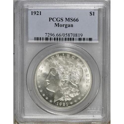 <B>1921 $1 MS66 PCGS.</B></I> PCGS Population (457/12). NGC Census: (648/14). Mintage: 44,690,000. Numismedia Wsl. Price for NGC/PCGS coin in MS66: $725. (#7296)<BR><BR><b>Shipping:</b> Coins & Currency (<a target="_blank" href="http://www.heritageauctions.com/common/shipping.php">view shipping information</a>)