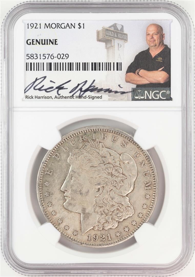 1921 $1 Morgan Silver Dollar Coin NGC Genuine Rick Harrison Signature
