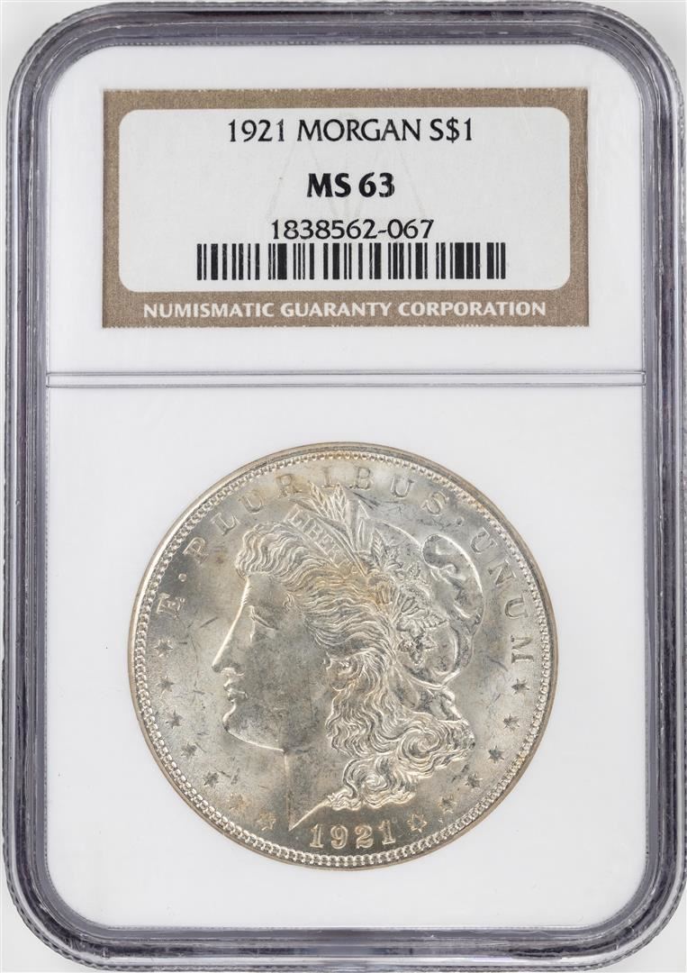 One 1921 $1 Morgan Silver Dollar Coin NGC MS63. NGC Certified.