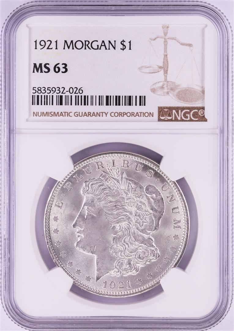 One 1921 $1 Morgan Silver Dollar Coin NGC MS63. NGC Certified.