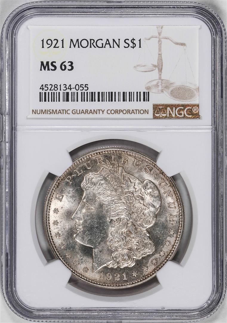 One 1921 $1 Morgan Silver Dollar Coin NGC MS63. NGC Certified.