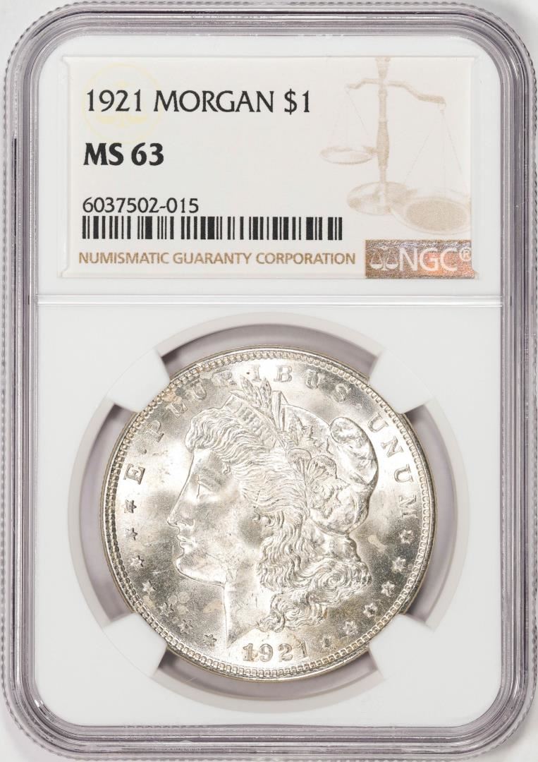 One 1921 $1 Morgan Silver Dollar Coin NGC MS63. NGC Certified.