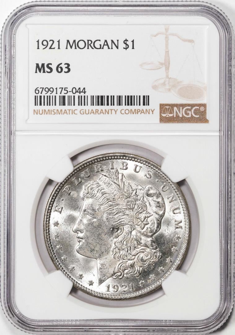 One 1921 $1 Morgan Silver Dollar Coin NGC MS63. NGC Certified.