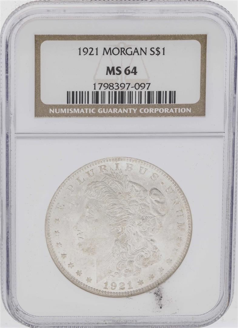 One 1921 $1 Morgan Silver Dollar Coin NGC MS64. NGC Certified.