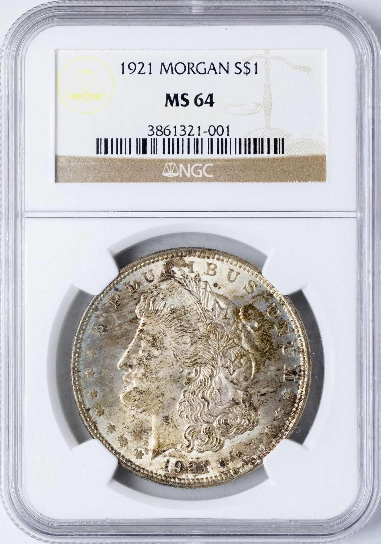 One 1921 $1 Morgan Silver Dollar Coin NGC MS64.