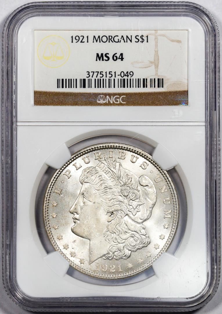 One 1921 $1 Morgan Silver Dollar Coin NGC MS64. NGC Certified.