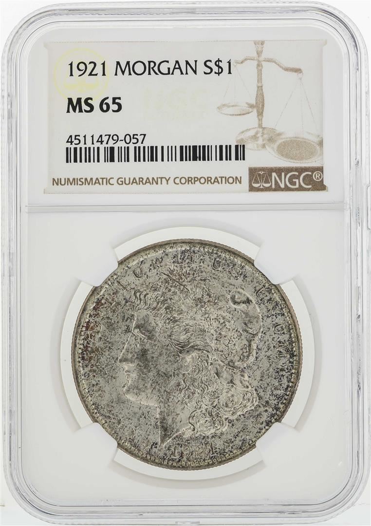 One 1921 $1 Morgan Silver Dollar Coin NGC MS65. NGC Certified.