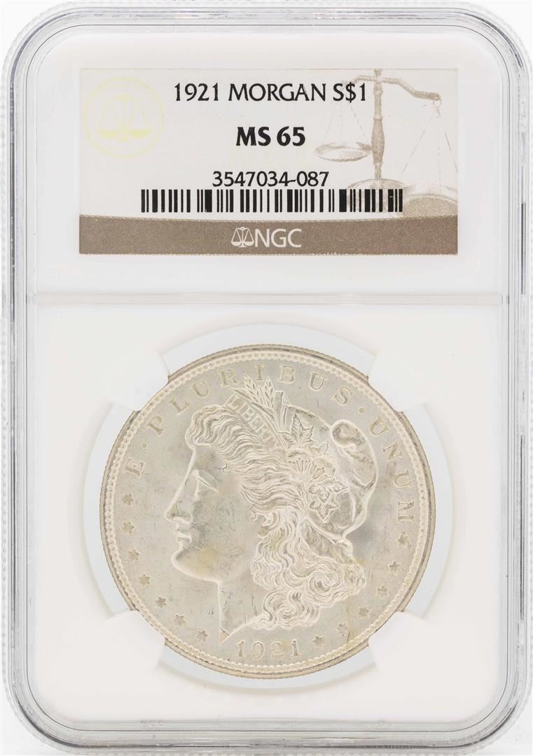 One 1921 $1 Morgan Silver Dollar Coin NGC MS65. NGC Certified.