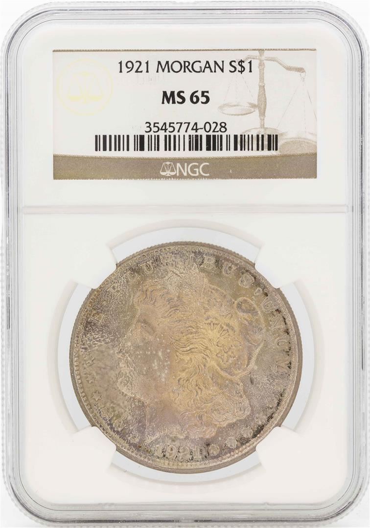 One 1921 $1 Morgan Silver Dollar Coin NGC MS65. NGC Certified.