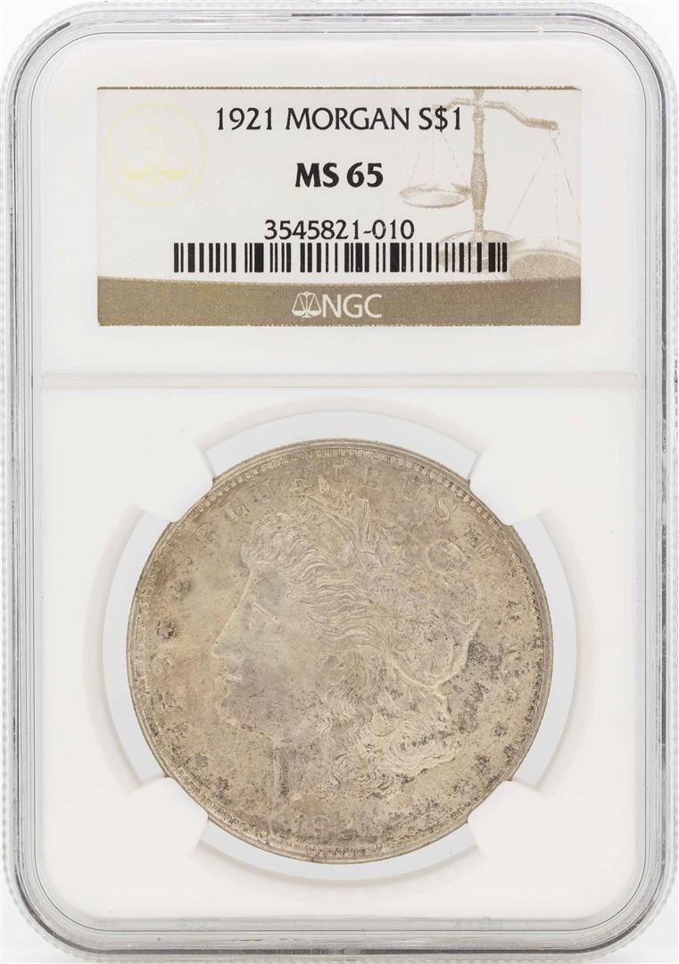 One 1921 $1 Morgan Silver Dollar Coin NGC MS65. NGC Certified.