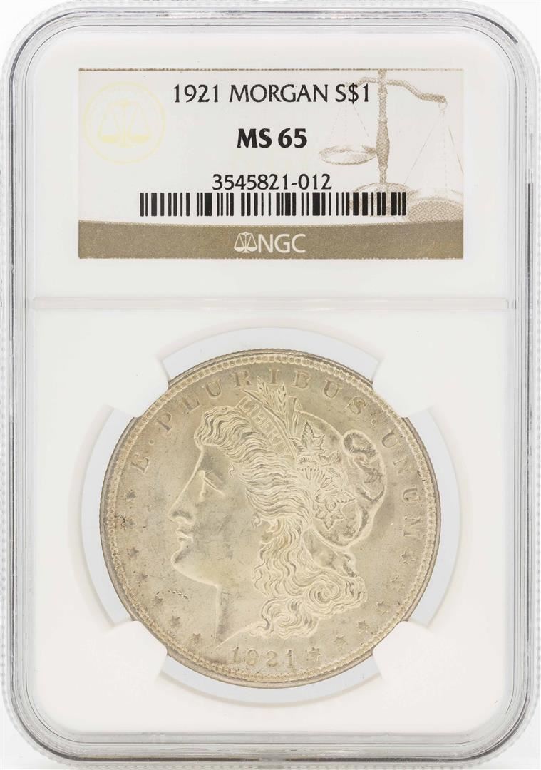One 1921 $1 Morgan Silver Dollar Coin NGC MS65. NGC Certified.
