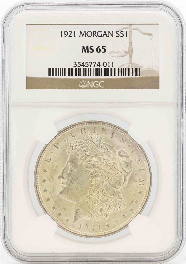 One 1921 $1 Morgan Silver Dollar Coin NGC MS65. NGC Certified.