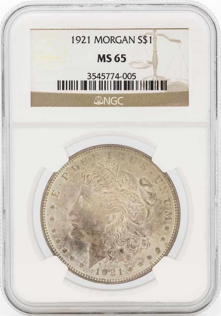 One 1921 $1 Morgan Silver Dollar Coin NGC MS65. NGC Certified.