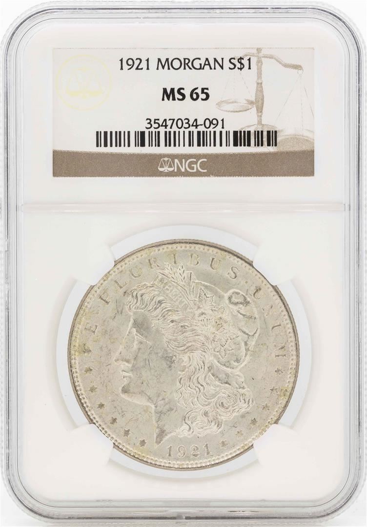 One 1921 $1 Morgan Silver Dollar Coin NGC MS65. NGC Certified.