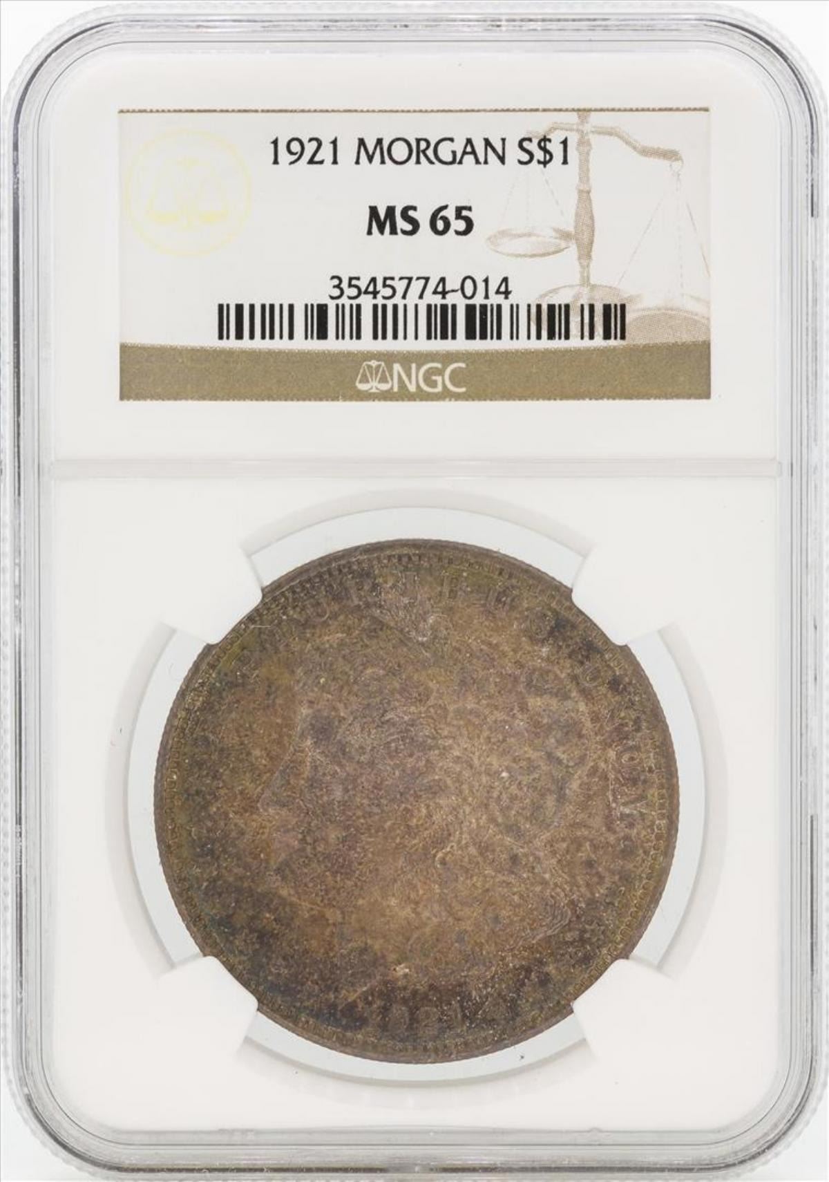 One 1921 $1 Morgan Silver Dollar Coin NGC MS65. NGC Certified.