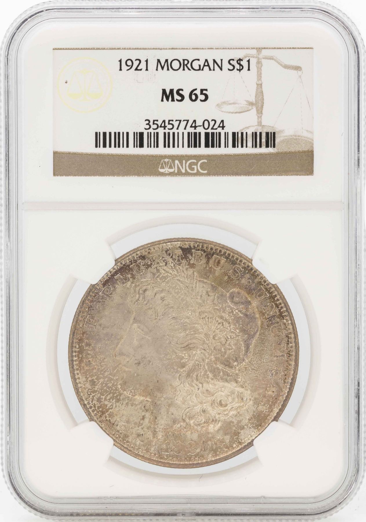 One 1921 $1 Morgan Silver Dollar Coin NGC MS65.