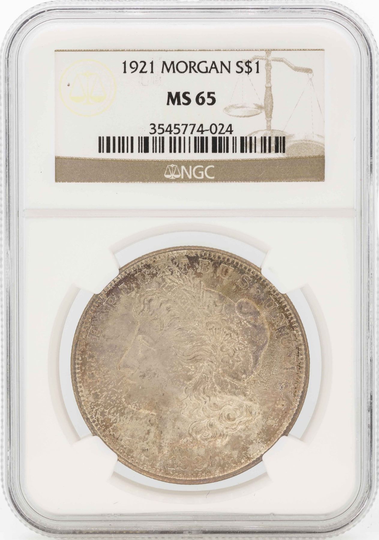 One 1921 $1 Morgan Silver Dollar Coin NGC MS65.