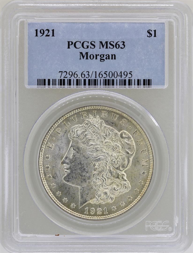 One 1921 $1 Morgan Silver Dollar Coin PCGS MS63. PCGS Graded.