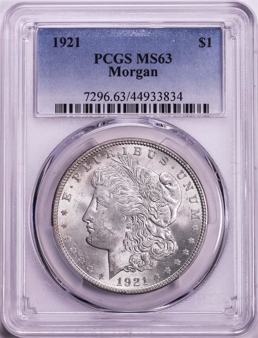 One 1921 $1 Morgan Silver Dollar Coin PCGS MS63. PCGS Graded.