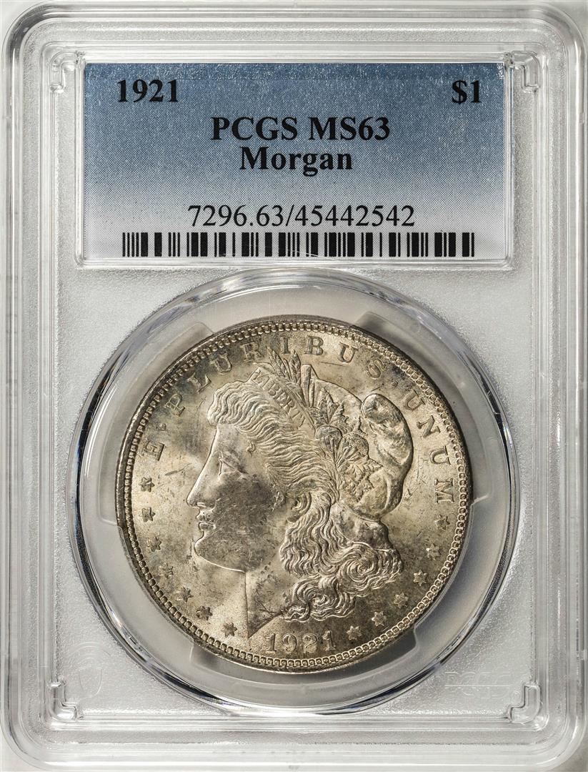 One 1921 $1 Morgan Silver Dollar Coin PCGS MS63. PCGS Graded.