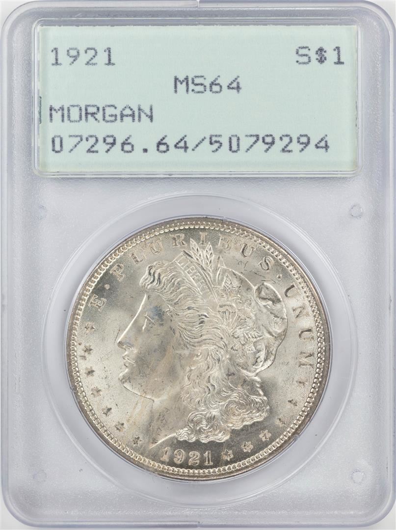 1921 $1 Morgan Silver Dollar Coin PCGS MS64 Old Green Rattler