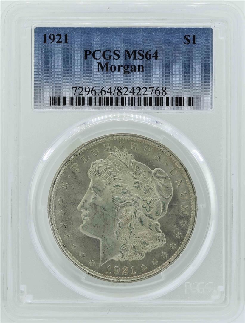 One 1921 $1 Morgan Silver Dollar Coin PCGS MS64. PCGS Graded.