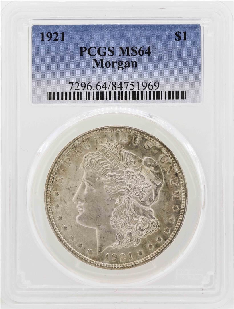 One 1921 $1 Morgan Silver Dollar Coin PCGS MS64. PCGS Graded.