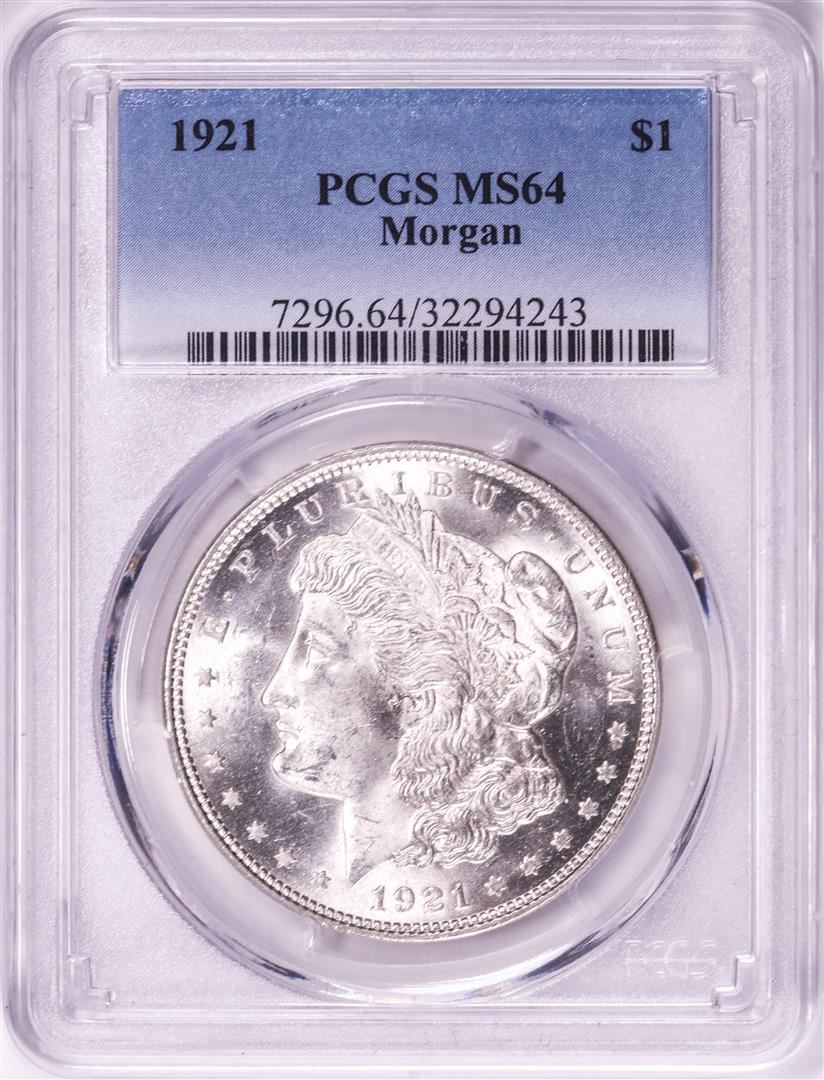 One 1921 $1 Morgan Silver Dollar Coin PCGS MS64. PCGS Graded.