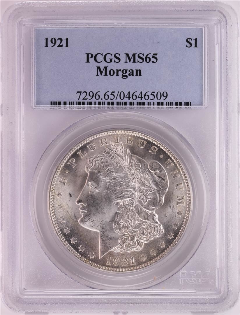 One 1921 $1 Morgan Silver Dollar Coin PCGS MS65. PCGS Graded.